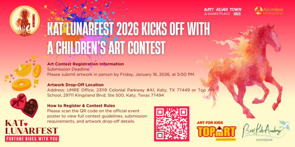Post: LunarFest 2026 Preview: Food, Artisans & Vendor Highlights at Katy Asian Town Home/News News LunarFest 2026 Preview: Food, Artisans & Vendor Highlights at Katy Asian Town Home/No breadcrumbs Featured Posts by remaxunited888December 30, 2025 Featured Posts Now Open: COS (Collection of Style)Ring in the Year of the Fire Horse: AMA COSMOS “Fortune Rides With You” Pop-Up Market Runs Every Saturday in JanuaryNow Open: COS (Collection of Style) January 9, 2026 LunarFest 2026 Preview: Food, Artisans & Vendor Highlights at Katy Asian Town December 30, 2025 KAT LunarFest 2026 Kicks Off with a Children’s Art Contest December 12, 2025 remaxunited888